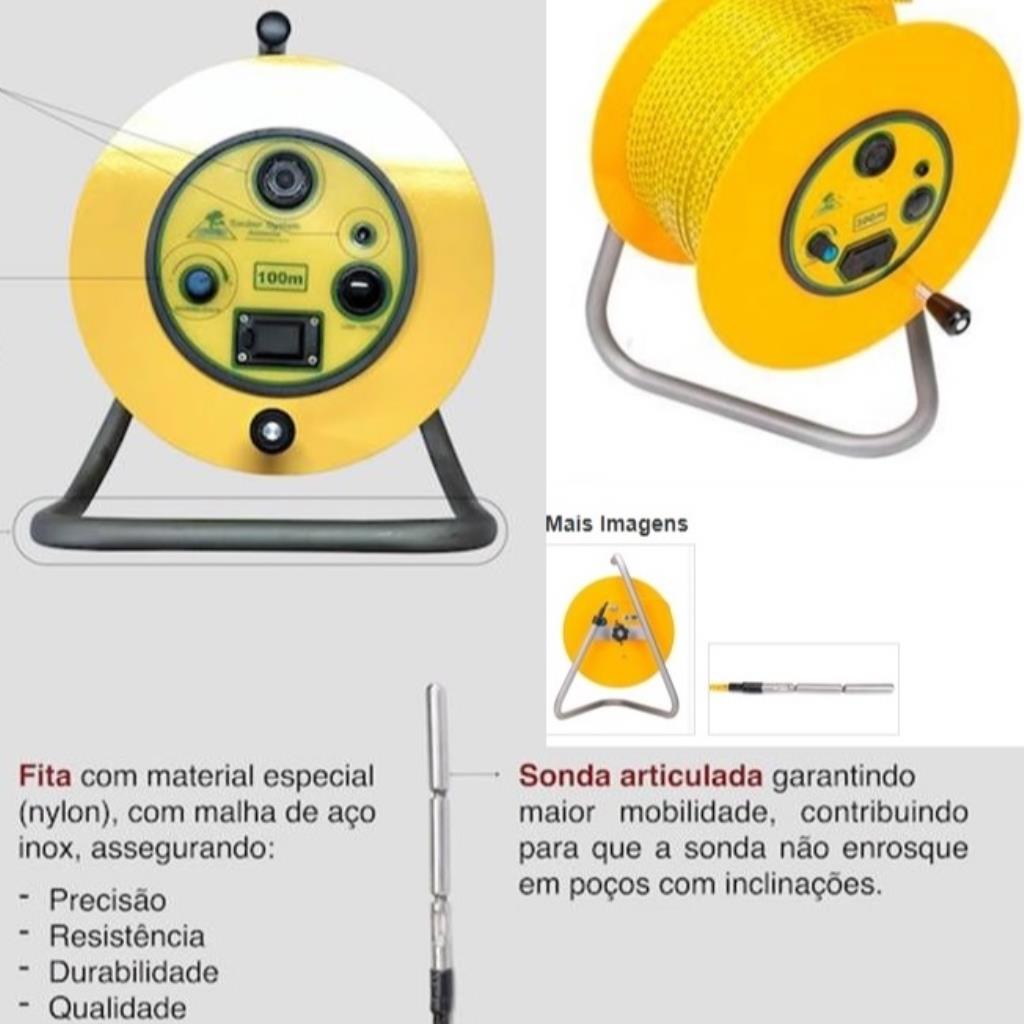 Descrição: o medidor eletrônico de nível estático e dinâmico para poços, marca WaterControl, modelo Ambiental, é um instrumento de nível profissional e indispensável para se determinar as variações no nível do lençol freático no solo. De construção robusta e simples manuseio pode ser oferecido com cabo variando nos comprimentos de 50/100/150/200/250/300/350/400metros. O menor modelo é para 50metros e o oferecido neste item é o de 100m. Para os outros comprimentos de cabo, de 100 a 400metros, envie um email para vendas@soilcontrol.com.br e solicite um orçamento.Oferecemos a pronta entrega o modelo de 100m, disponível em "Novos" nesta lojavirtual.